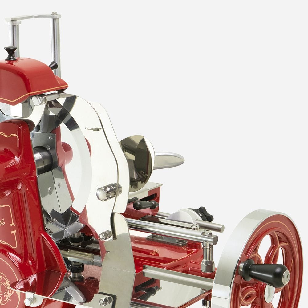 Darüber hinaus ermöglicht das Schnellreinigungs- und Rückstellsystem in Kombination mit dem manuellen Millimeterknopf eine präzise Positionierung. Das ausgewuchtete Berkel-Schwungrad verhindert zudem ein ungewolltes Drehen in jeder Position. Auch der abnehmbare Ein-Gang-Schleifer erhöht die Zuverlässigkeit, während die einstellbare Schnittstärke (0-1,5 mm) den Verschnitt minimiert. Kurz gesagt, diese Maschine liefert konstante Präzision und Effizienz.