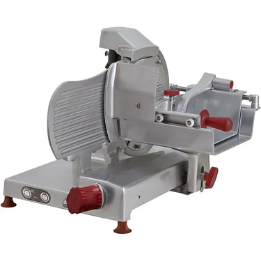 | Details | Gear Transmission, red plastic handles, plexiglass safety guard, frontal lubricating oil refill tank, Superglide® profile of the gauge plate with double wave, removable aluminum product holder with steel tips |