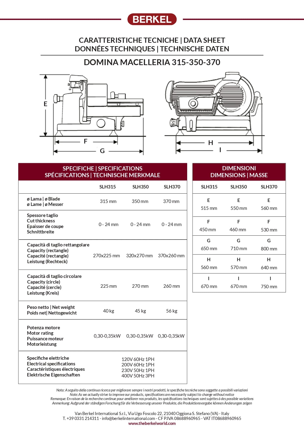 | Electrical specs | 230V 50Hz 1PH 400V 50Hz 3PH 120V 50Hz 1PH 220V 60Hz 1 PH |
