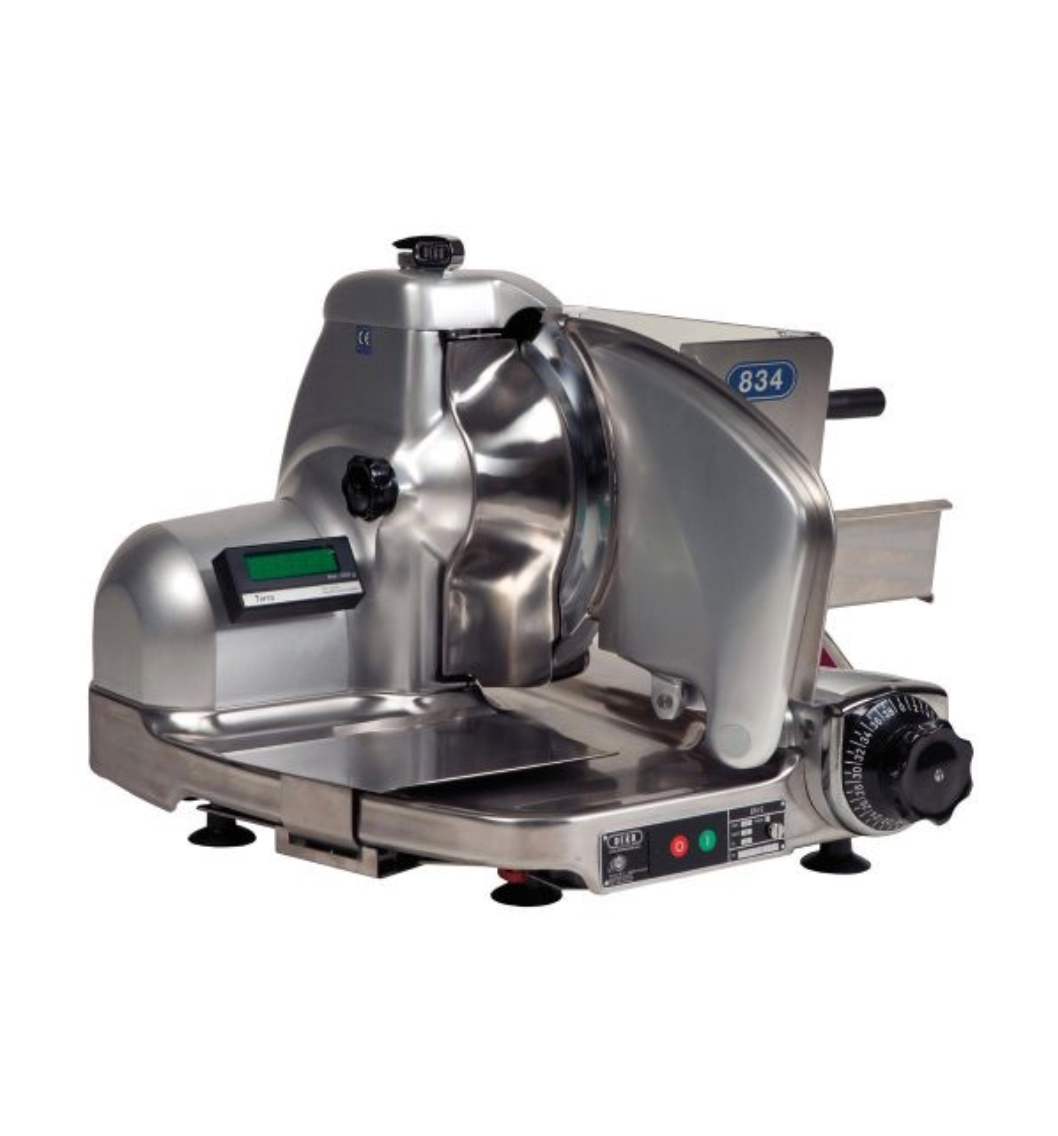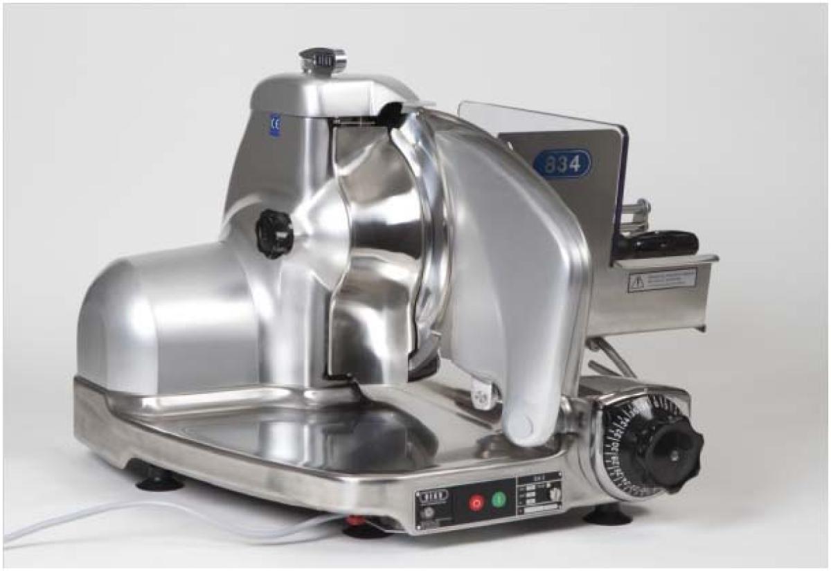 De 834 Slicer snijdt van flinterdun tot plakken van 14 mm met een geïntegreerde slijp-unit: het mes kan snel en eenvoudig geslepen worden. Duurzaam en ergonomisch design en eenvoudige bediening.